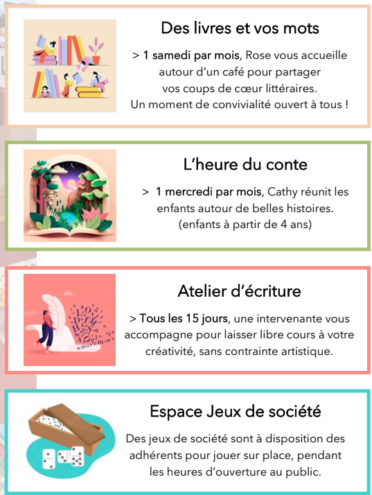 La bibliothèque propose des activités pour adultes et enfants tout au long de l’année.